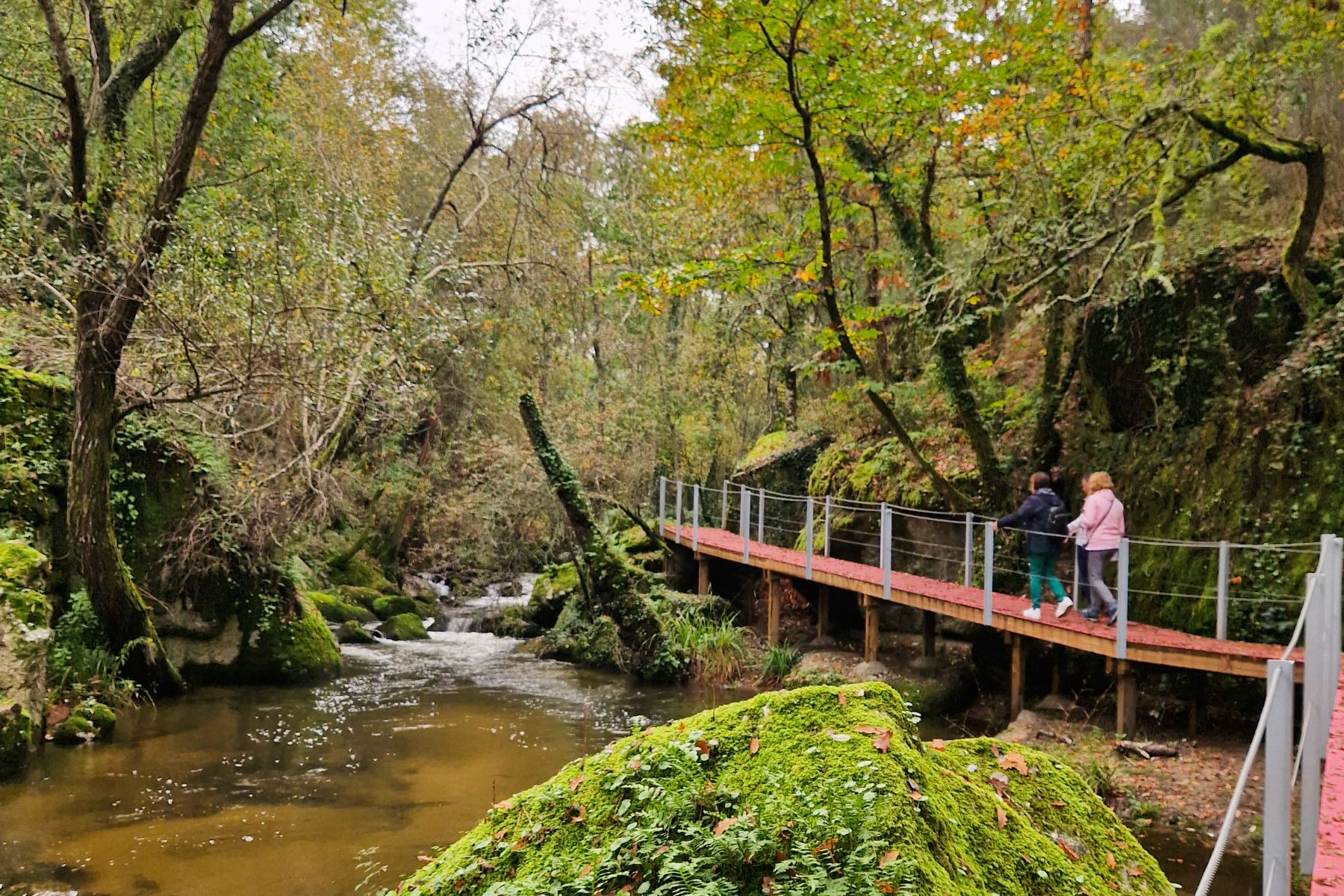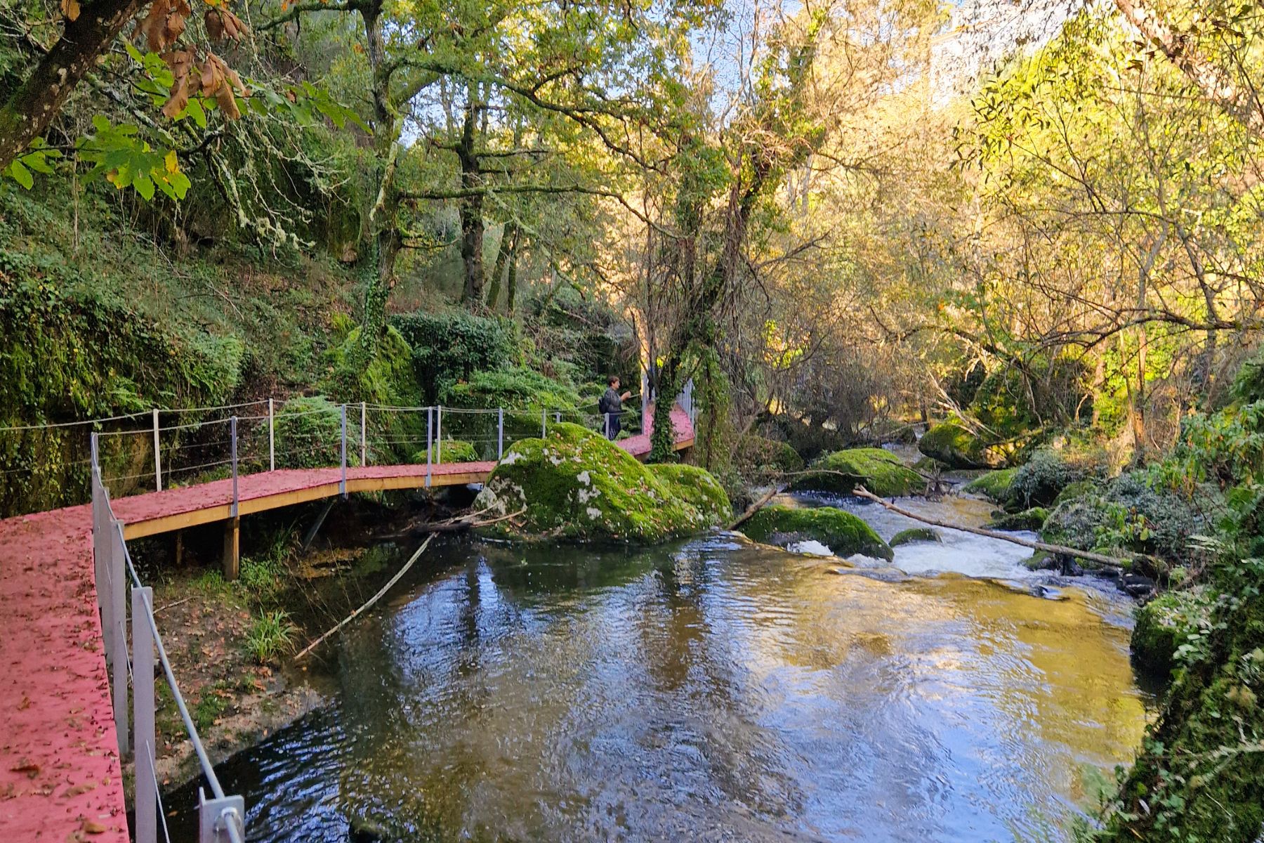 Nesta viagem vamos explorar o percurso pedestre “Trilho dos Gaios” em Tábua, um percurso que é conhecido por sua seção multicolorida ao longo do passadiço, o que o torna verdadeiramente mágico. Este trilho serpenteia ao longo das margens do rio Cavalos, tem uma extensão de 6 km (ida e volta) e é classificado como de dificuldade fácil. Durante a caminhada, terá a oportunidade de percorrer trechos de passadiço colorido e trilhos de terra, que o levarão por um ambiente de bosques verdejantes, pedras musgosas, imponentes penedos de granito, cascatas e lagoas de água cristalina. Além disso, haverá tempo para explorar o centro histórico de Tábua, visitar a encantadora aldeia de Sevilha com suas cascatas e subir ao Miradouro Pedra da Sé.